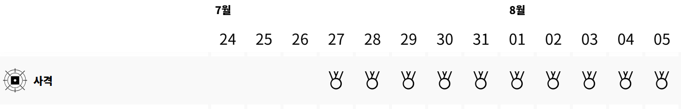 - 7월 27일 (토) ~ 8월 5일 (월)