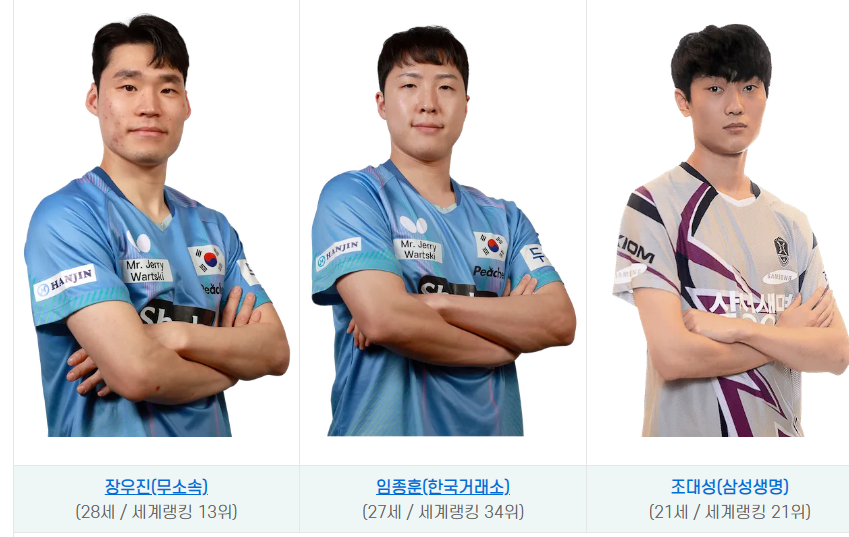 - 장우진(29, 세계랭킹 13위): 2020 도쿄 올림픽 단체전 4위, 단식 9위. 2022 항저우 아시안게임에서 은메달 2개, 동메달 2개 획득. 파리 올림픽에서 단체전 및 개인전 동메달 목표.