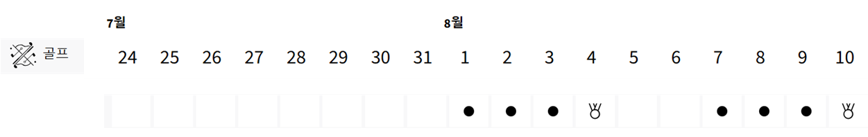| 8월 4일 | 16:00 | 남자 개인 스트로크 플레이 4라운드 |