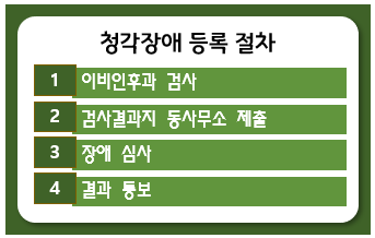 청각장애 등록을 위해서 다음 절차를 밟으셔야 합니다.