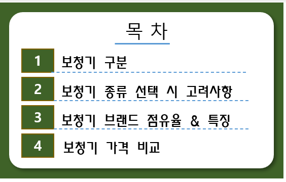 | 신호처리 방식 | 아날로그보청기 | 2000년대 이전까지 주로 사용, 기능과 효율성이 낮음 |