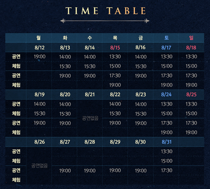- 공연일정 : 2024년 08월 12일(월) ~ 2024년 08월 31일(토)