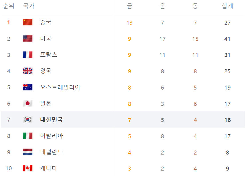 2024년 파리올림픽이 벌써 9일차를 지나고 있습니다. 당초 우리나라는 최근들어 가작 적은 규모의 선수단이 참여하며 성적에 그리 큰 기대를 하지 않았습니다. 그러나, 막상 올림픽이 시작되니 우리 선수들의 저력이 돋보이고 있습니다. 올림픽 시작 전에는 금메달 5개에 15위 정도를 기대했으나 중반을 지나고 있는 지금 금메달 7개, 은메달 5, 동메달 4개로 국가별 메달 순위에서 7위를 달리고 있습니다.