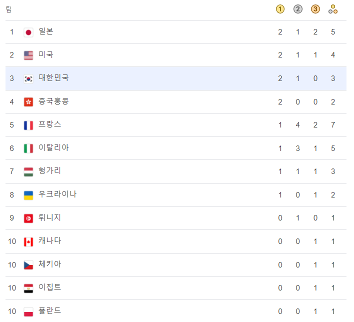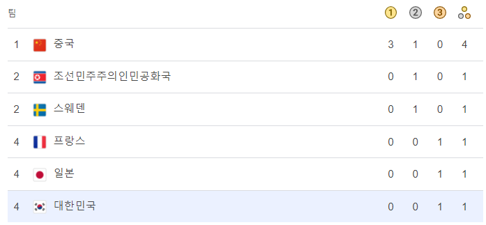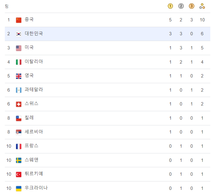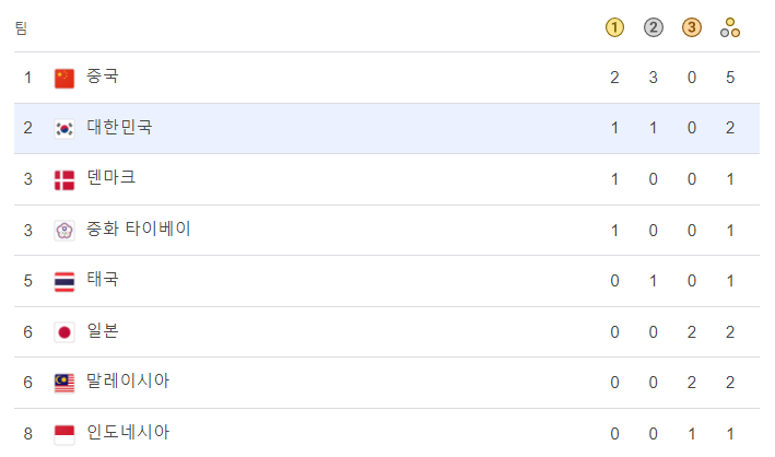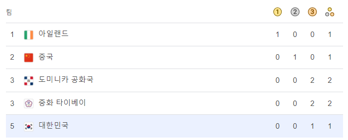 복싱 역시 아직 경기가 진행중인 상황에서 현재 대한민국은 동 1로 종합순위 5위를 차지하고 있습니다.