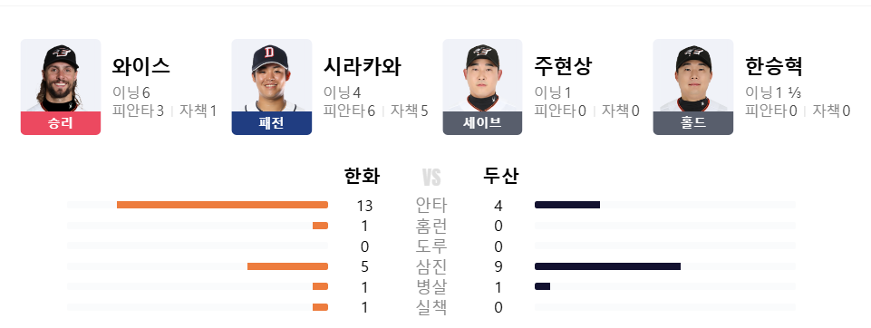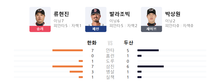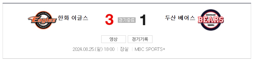 오늘은 한화이글스와 두산베어스간의 주말 3연전 경기 결과를 정리해 볼까 합니다.