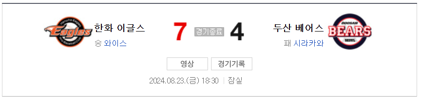 오늘은 한화이글스와 두산베어스의 주말 3연전 경기를 정리해 보았습니다. 한화이글스는 19년만에 두산베어스와의 경기에서 스윕승을 거두며 팀순위를 7위로 끌어 올렸습니다. 최근 한화이글스의 기세가 무서운데요, 과연 올해는 한화이글스가 가을야구에 갈 수 있을지 남은 경기가 기대됩니다.