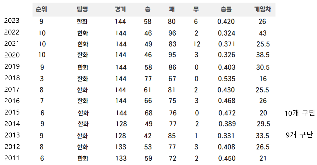 오늘은 1986년 빙그레 이글스로 창단 후, 현재의 한화 이글스에 이르기까지 한화이글스의 역대 성적(기록)과 역사를 정리해 볼까 합니다.