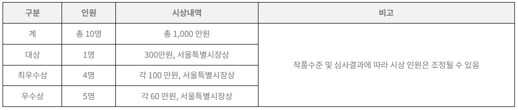 | 포상 | 300만원 | 150만원 | 80만원 | 10만원 |