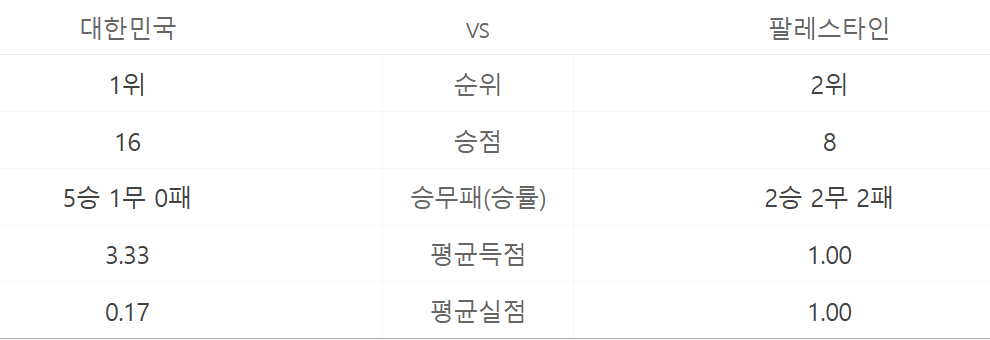 - 팔레스타인 : 96위(포인트, 1231.25)