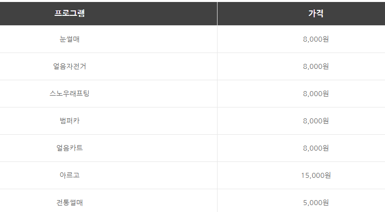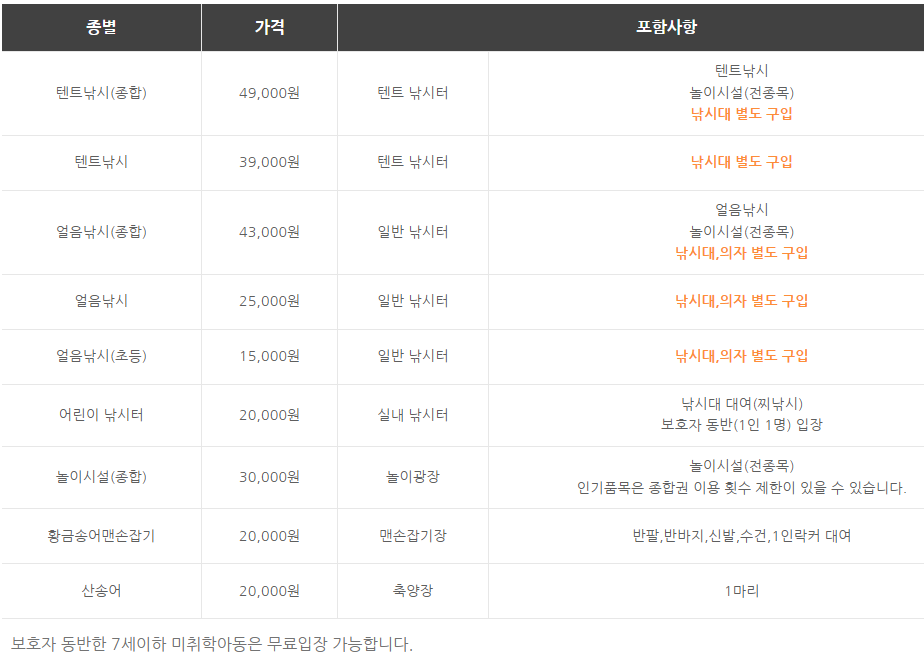 놀이시설 이용가격