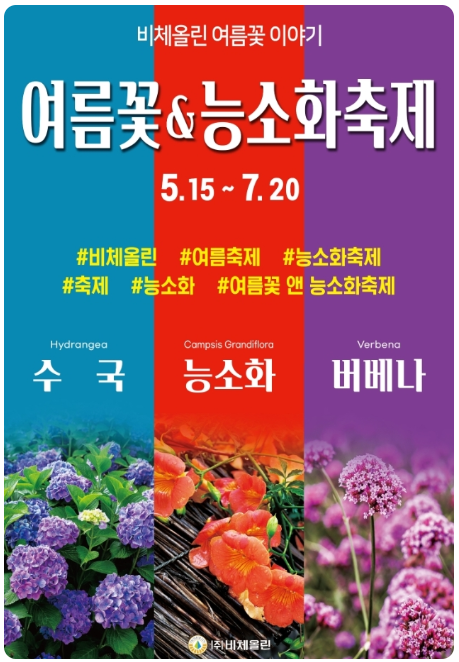 - 행사소개: 여름꽃 능소화축제는 제주도 제주시 비체올린 힐링파크에서 열리는 대표적인 여름꽃 축제로 아름다운 능소화꽃을 비롯해 다양한 여름꽃을 감상할 수 있는 행사입니다.