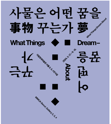 - 소개: '사물은 어떤 꿈을 꾸는가'는 동시대 미술과 디자인 실천을 통해 사물의 개념을 확장하며 3가지 소주제로 구성된다. 첫째, ‘사물의 세계'는 사물을 재료나 물질로 해체해보거나 다른 감각으로 바꾸어 사물이 우리 곁에 있음을 알아차리게 하고, 둘째, ‘보이지 않는 관계'에서는 사물이 인간의 쓰임을 받는 대상이 아니라 인간의 삶에 지대한 영향을 미치는 중요한 행위자라는 사실을 확인해본다. 마지막으로 ‘어떤 미래'는 기존의 범주와 시공간을 넘나드는 사물을 경유하여 불가능한 것을 꿈꿔 보는 자리이다. 이번 전시는 예술적 사고의 전환을 통해 ‘인간 너머'에 대해 생각해볼 수 있는 기회를 제공하고자 한다.