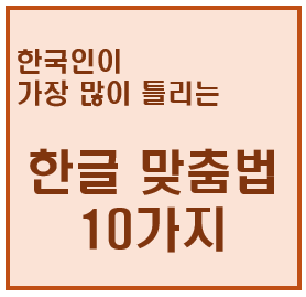 오늘은 카톡, 문자, 블로그 등 글쓰기 할 때, 한국인이 가장 많이 틀리는 맞춤법 10가지를 정리해 보았습니다. 그동안 혼용해서 쓰고 있던 저 자신을 반성하며 앞으로 바르게 우리말을 표현해야겠다는 다짐을 함께 해 보며 포스팅을 마칠까 합니다.